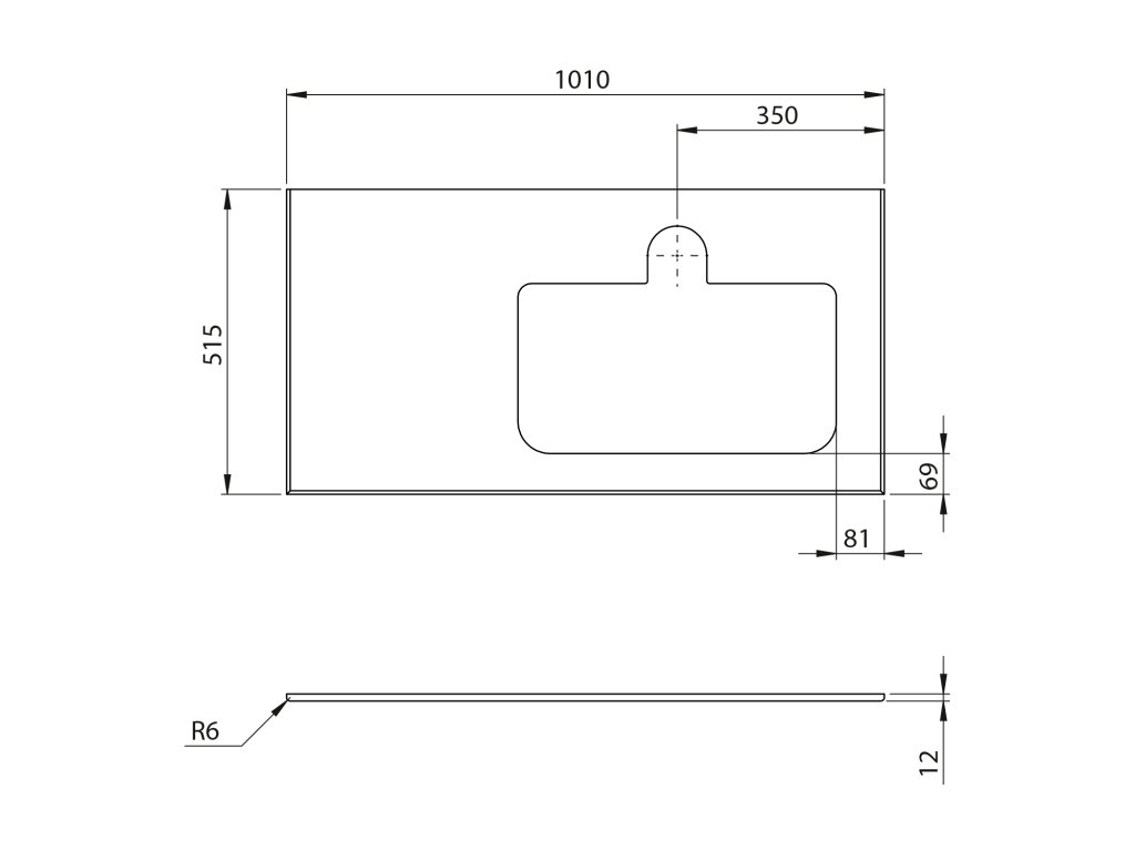 Sapho BRAHEA doska Rockstone s otvorom 101x51,5cm (30+70cm), pravá, biela matná BL101-0101-R-70