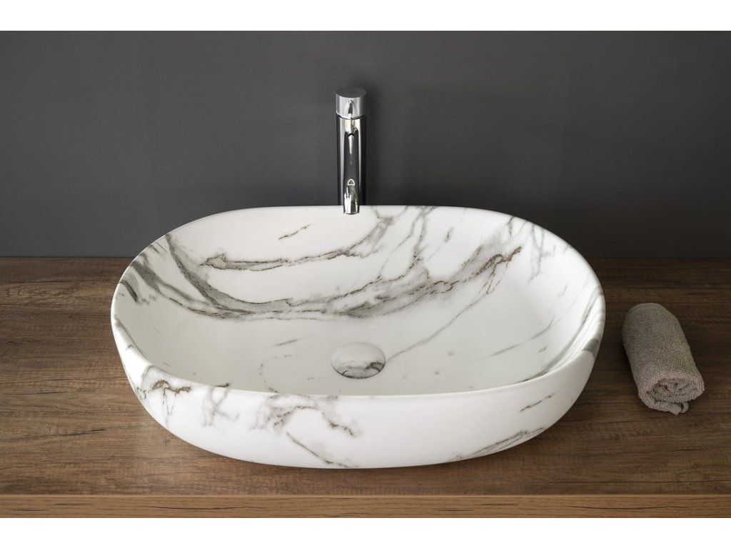 Sapho CALEO keramické umývadlo na dosku 60x42cm, bianco carrara CA590BC
