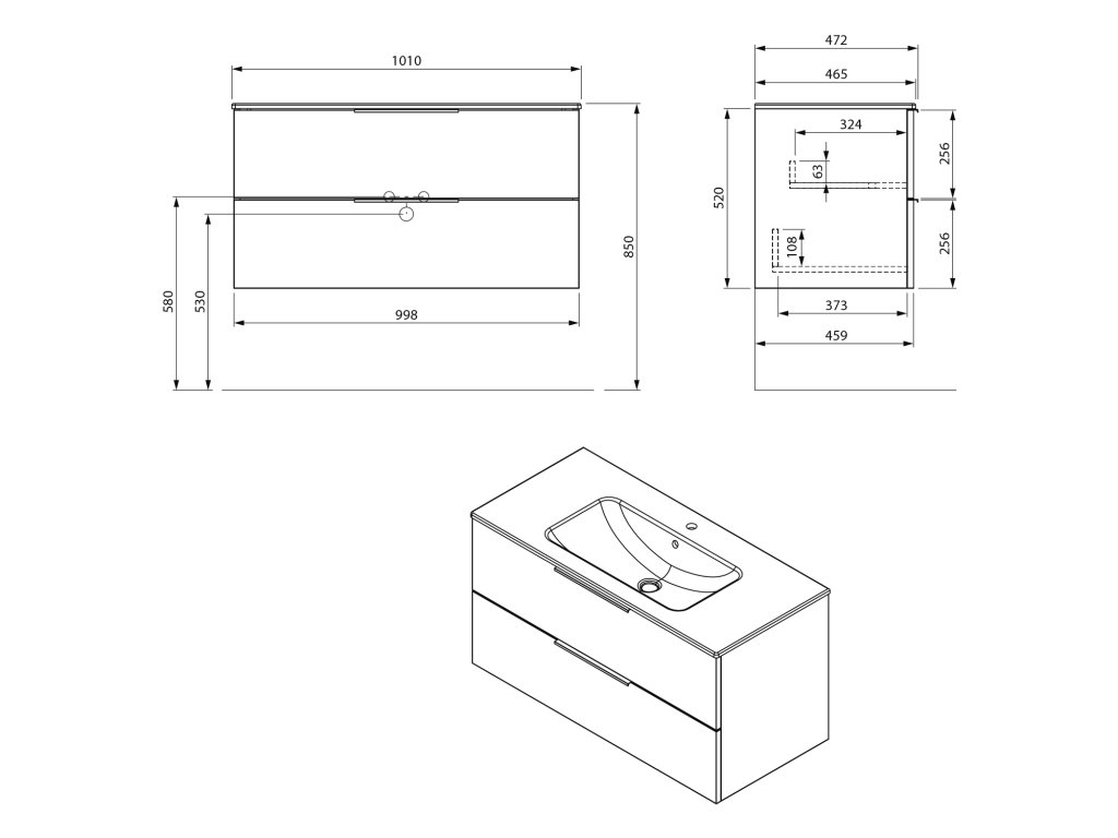 Sapho SLIM keramické umývadlo, nábytkové, 100x46,5cm, biela 1601-100