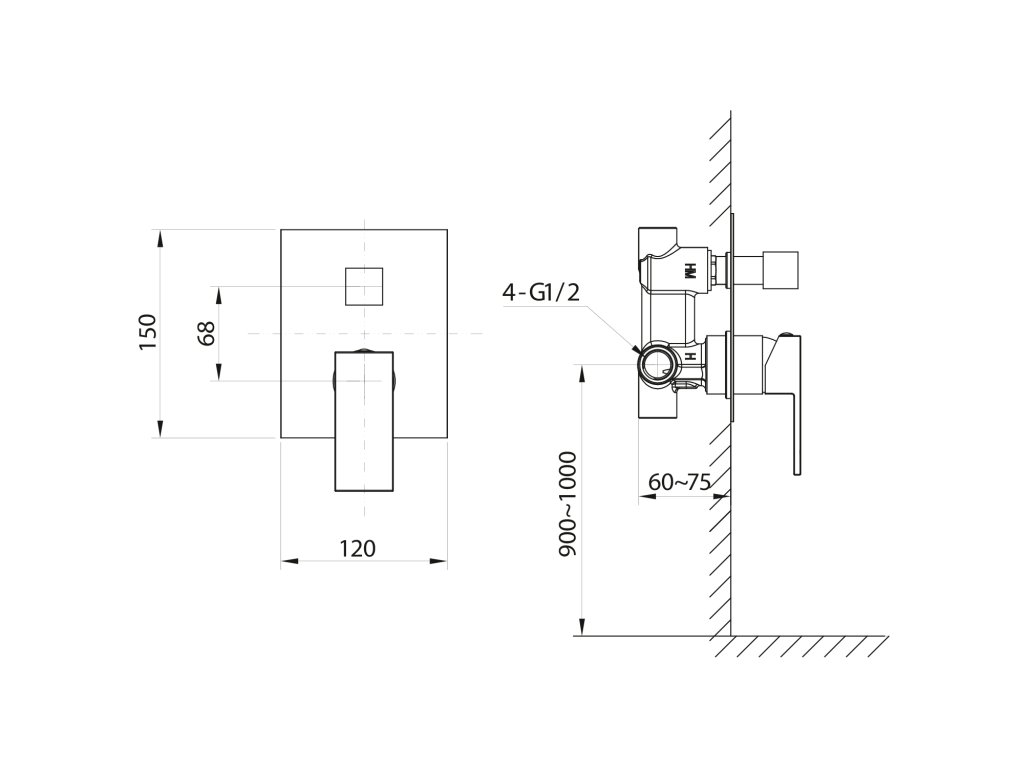 Sapho CUBEMIX podomietková sprchová batéria, 2 výstupy, chróm CM042