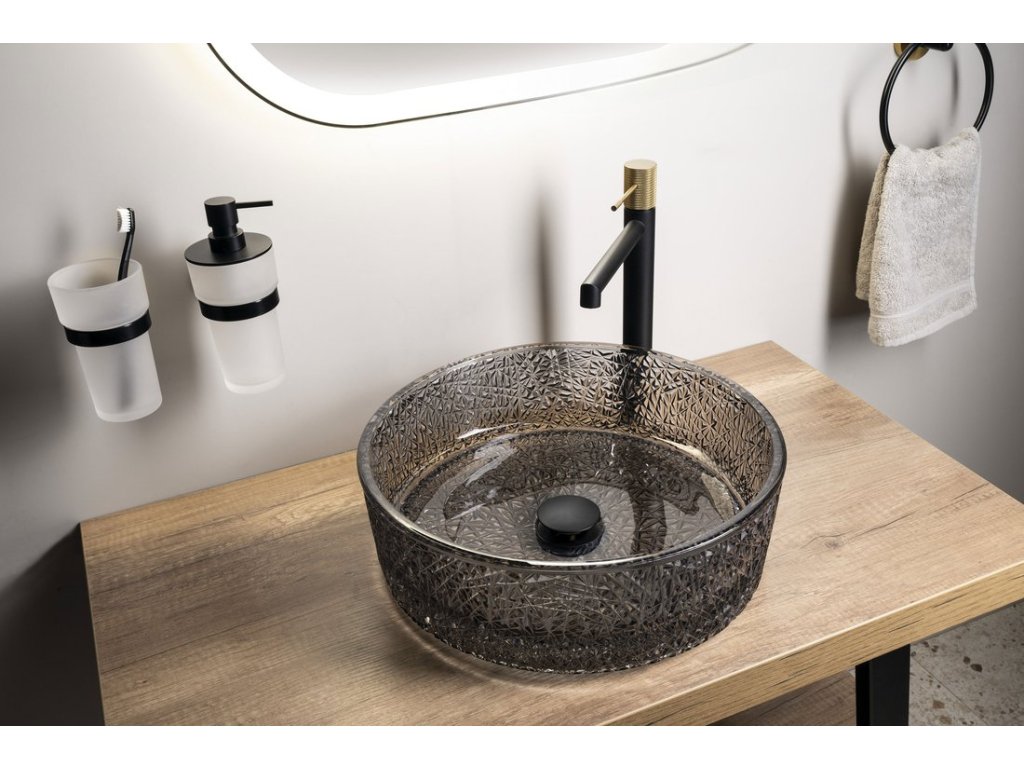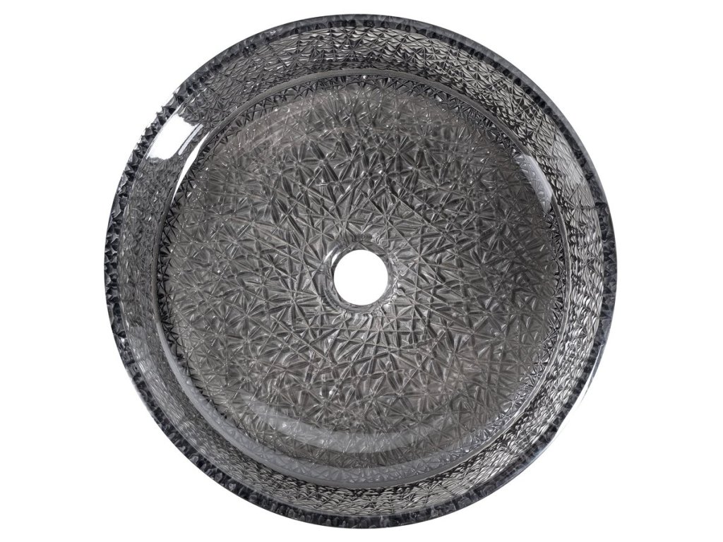 Sapho ERSEL gravírované sklenené umývadlo na dosku priemer 39,5cm, čierna TY323B