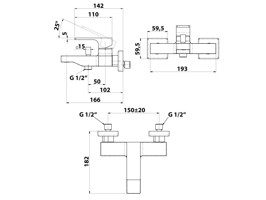Sapho FORATA nástenná vaňová batéria, čierna matná FT010/15