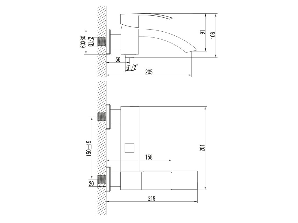 Sapho GINKO nástenná vaňová batéria, chróm 1101-10