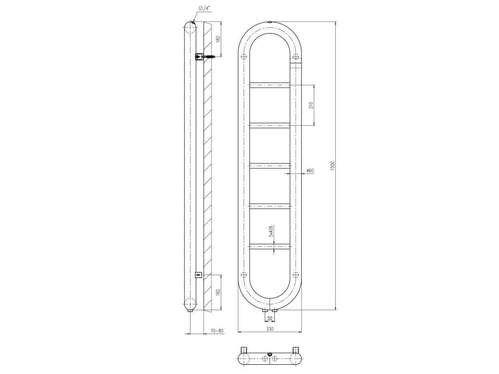 Sapho HORIZON vykurovacie teleso 330x1500 mm, čierna mat IR195