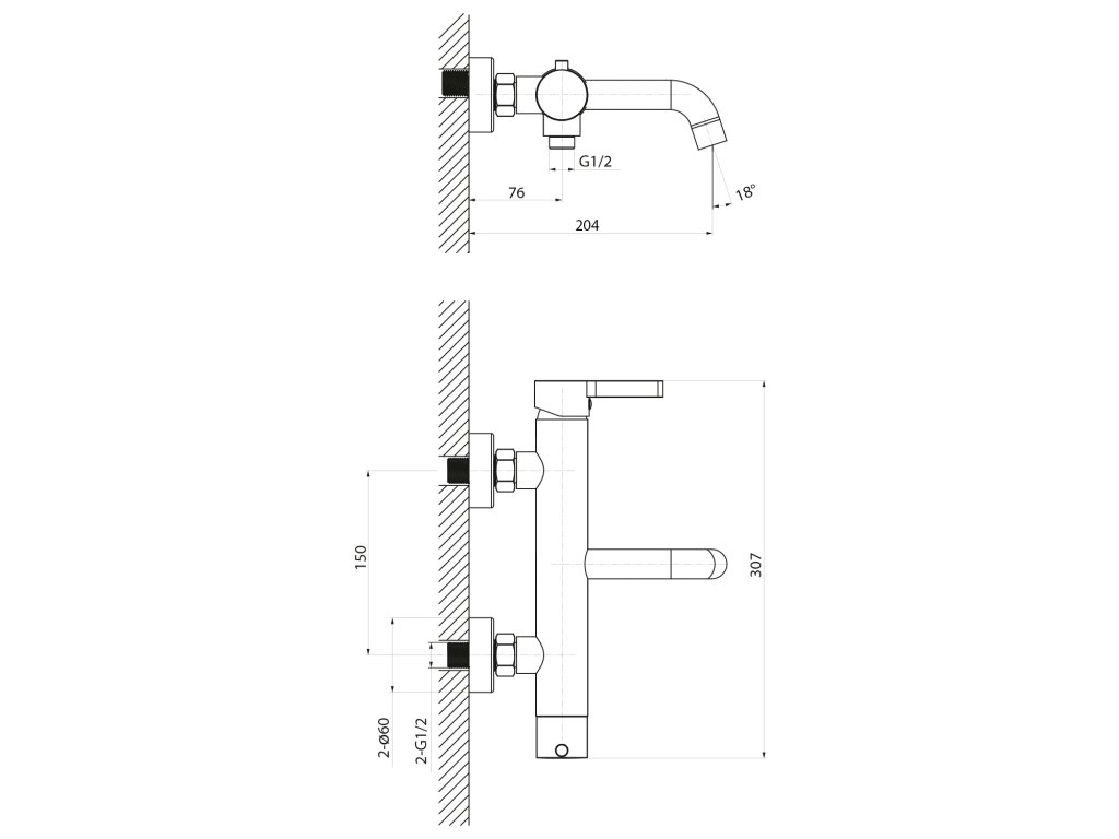 Sapho ICONIC nástenná vaňová batéria, chróm AF010