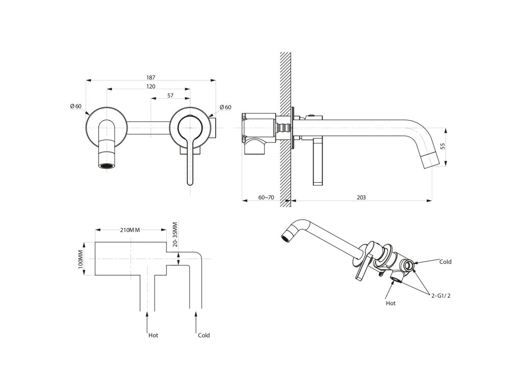 Sapho ICONIC podomietková dvojprvková umývadlová batéria, chróm AF008