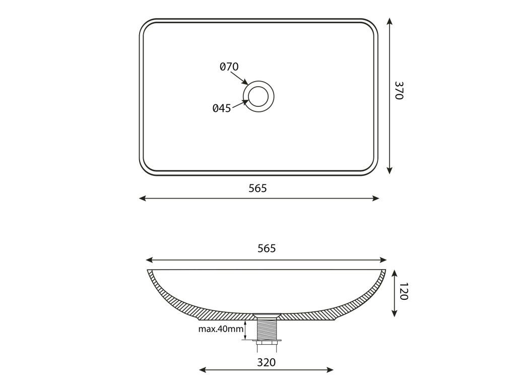Sapho INFRANE betónové umývadlo na dosku vrátane výpuste, 57x37cm, čierny granit AR464