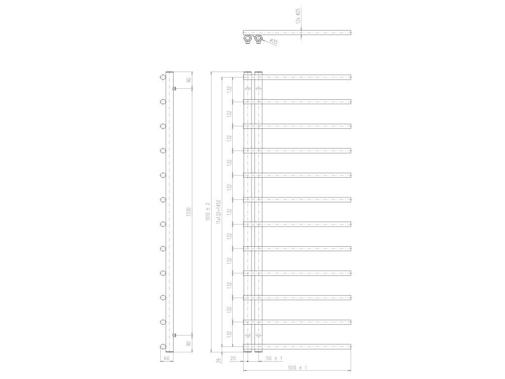Sapho JUSTINA vykurovacie teleso 500x1510 mm, čierna mat IR151B