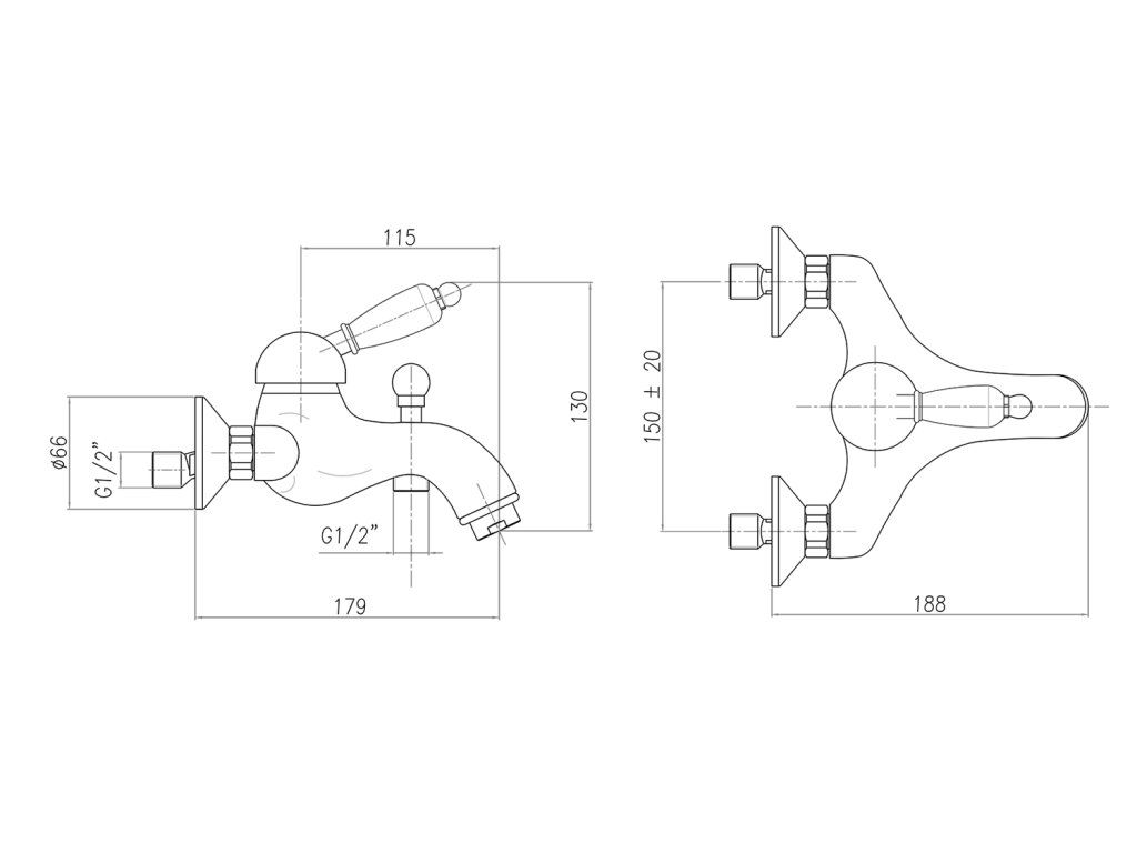 Sapho KIRKÉ BLACK nástenná vaňová batéria, čierna páčka, bronz KI10NB