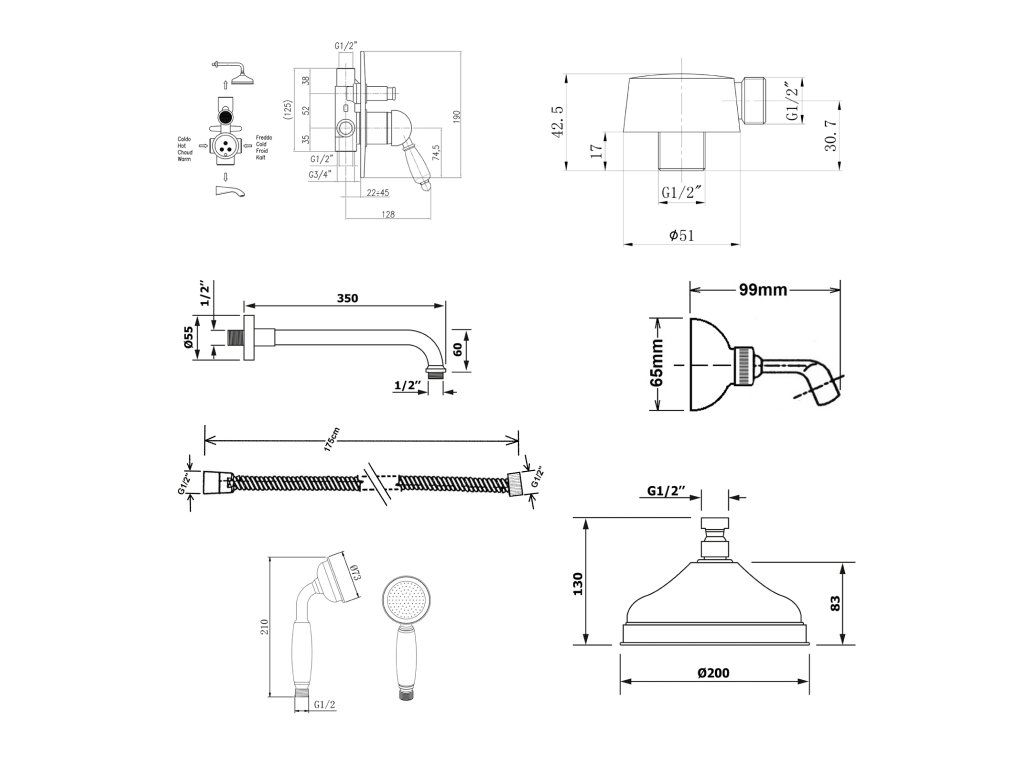 Sapho KIRKÉ WHITE podomietkový sprchový set s pákovou batériou, 2 výstupy, biela páčka, bronz KI42BB-01
