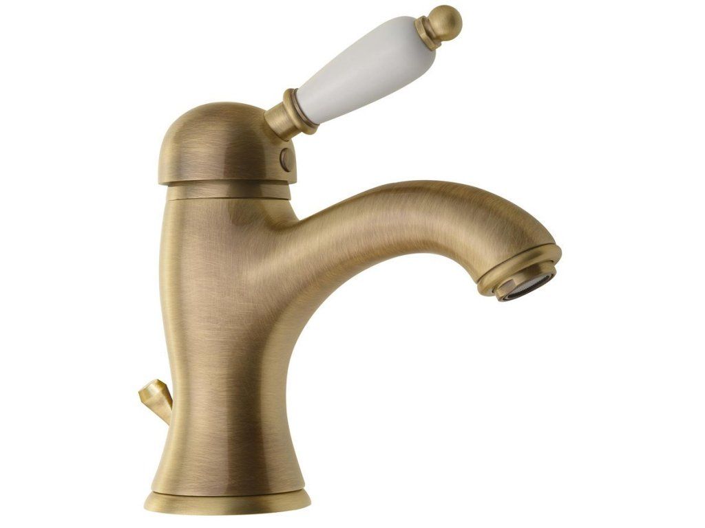 Sapho KIRKÉ WHITE stojánkova umývadlová batéria s výpusťou, biela páčka, bronz KI02BB