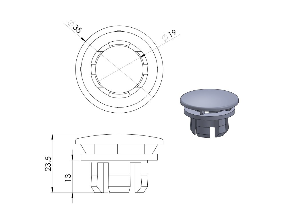 Sapho Krytka prepadu priemer 35mm, chróm ND1401