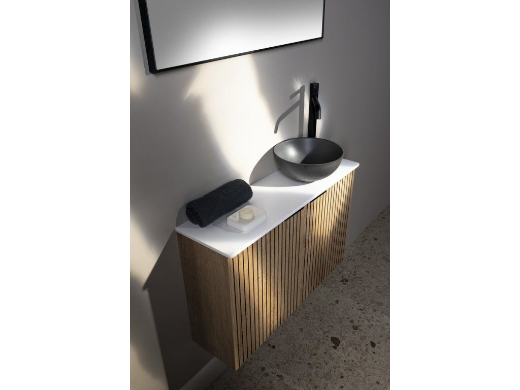 Malé rozmery kúpeľňového nábytku LATUS umožňujú inštaláciu najmä v stiesnených priestoroch, najmä na toaletách. Skrinka sa priamo ponúka na uloženie čistiacich a hygienických prostriedkov alebo toaletného papiera. Umývadlo z liateho mramoru alebo keramiky tvorí so skrinkou kompaktný celok. Pre väčšiu kompatibilitu je k dispozícii niekoľko tvarov umývadiel, ako aj farieb skriniek.