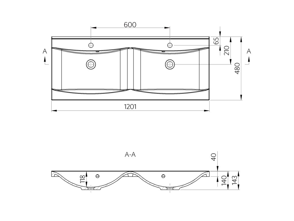 Sapho LUCIOLA dvojumývadlo 120x48cm, liaty mramor, biela 50122