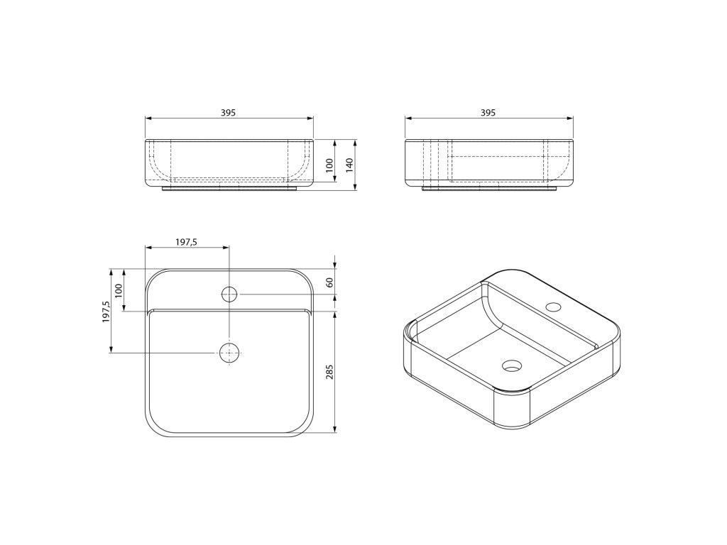Sapho MOLVENO keramické umývadlo na dosku, 39,5x39,5cm, biela AR453