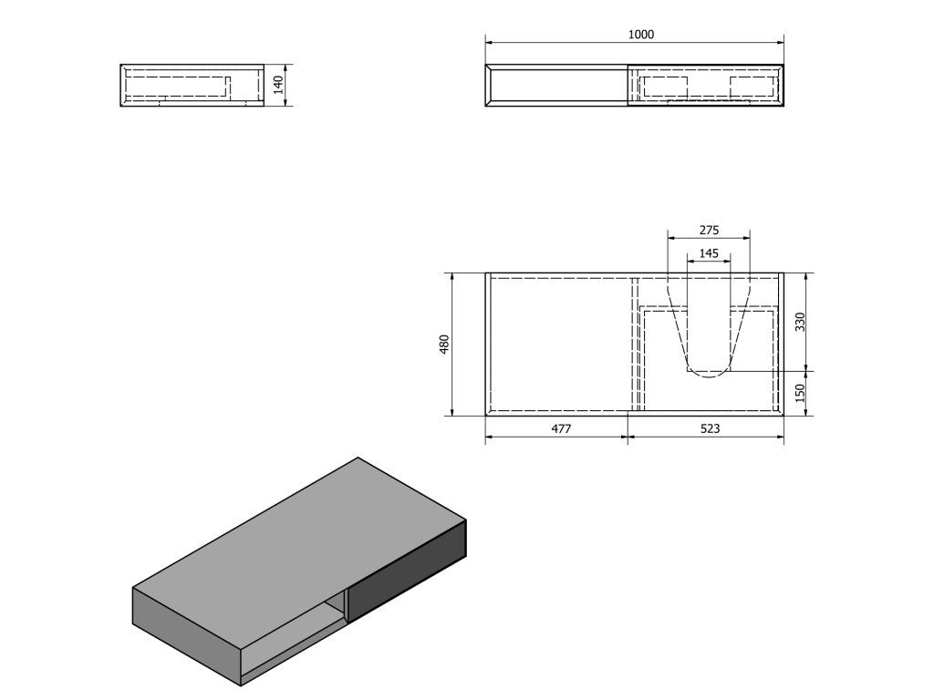 Sapho MORIAN umývadlová skrinka 100x14x48cm, dub čierny, pravá MR126