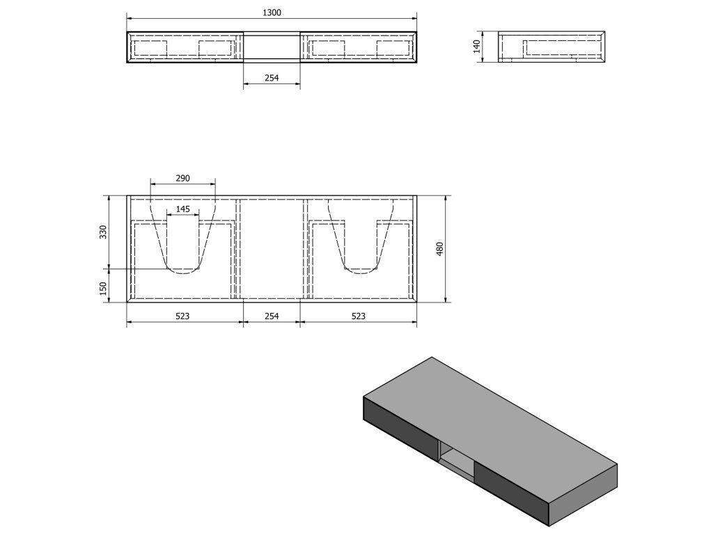 Sapho MORIAN umývadlová skrinka 130x14x48cm, dub čierny MR136