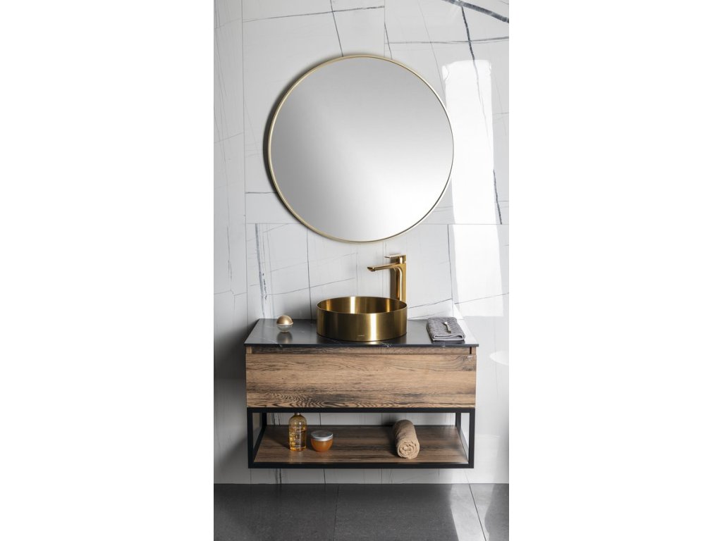 Sapho NOTION guľaté zrkadlo v ráme, ø 80cm, zlatá mat NT800G