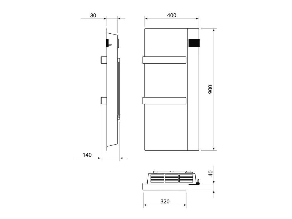Sapho ONSEN EVO elektrické vykurovacie teleso, 400x900mm, 1000 W, antracit ONS10011