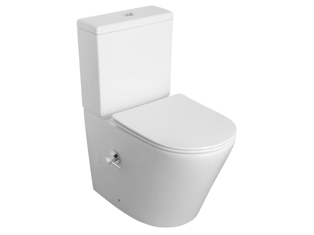 Sapho PACO CLEANWASH WC kombi misa, integrovaná batéria a bidetová spŕška, spodný/zadný, biela PC1012RX
