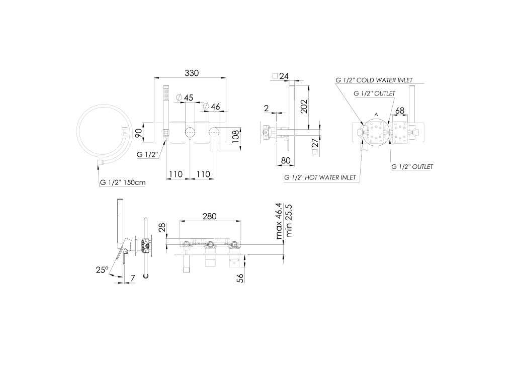 Sapho PAX podom. sprch./vaňová batéria, ručná sprcha, 3 výstupy XA53