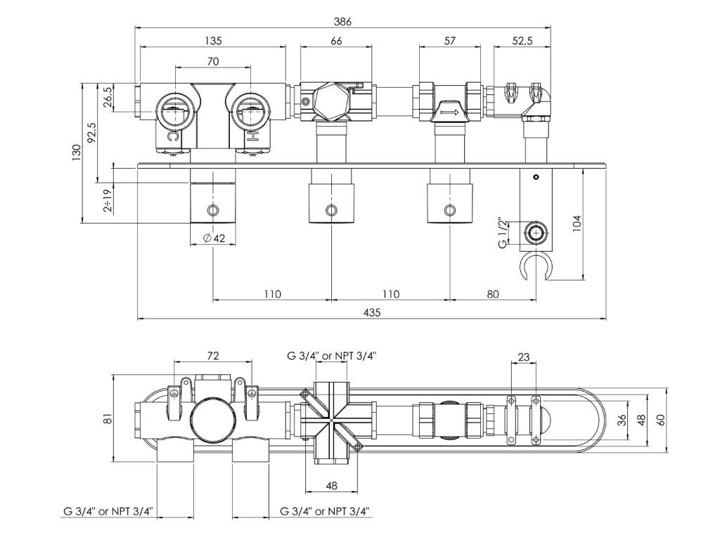 Sapho Podomietková termost. sprch./vaňová batéria s držiakom ručnej sprchy, 2 výstupy, guľatý, chróm MB623