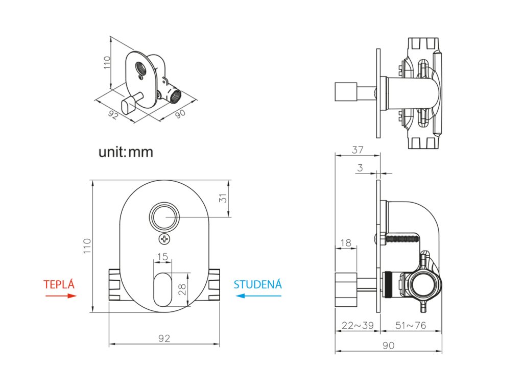 Sapho Podomietkový regulátor teploty vody pre bidetové spršky, chróm 1209-03