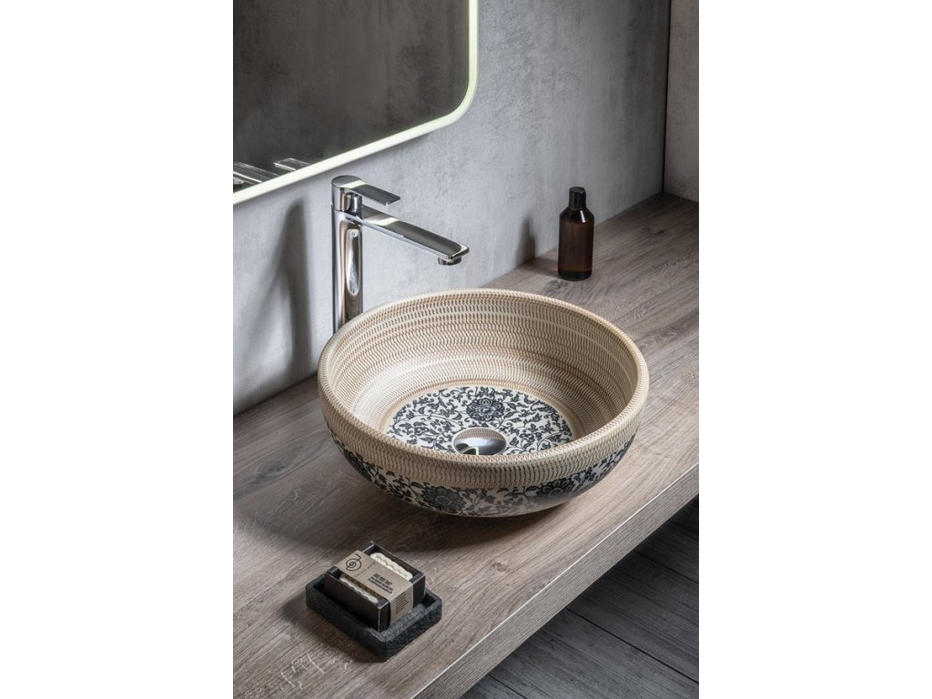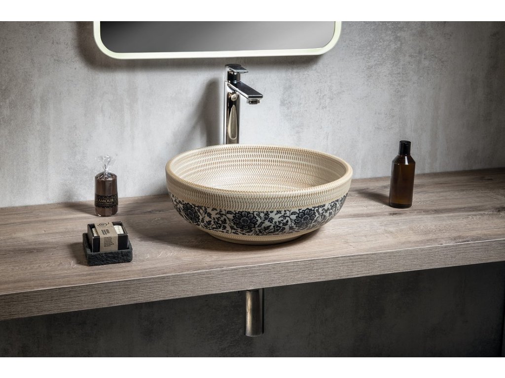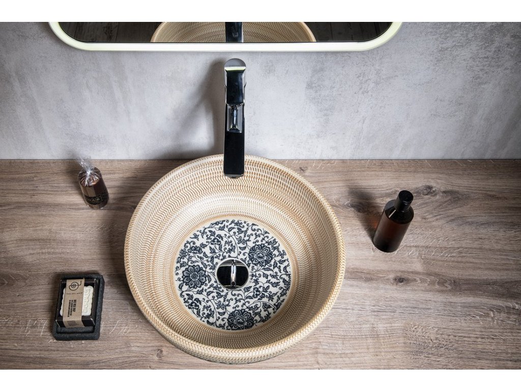 Sapho PRIORI keramické umývadlo na dosku Ø 41 cm, hnedá s modrým vzorom PI011