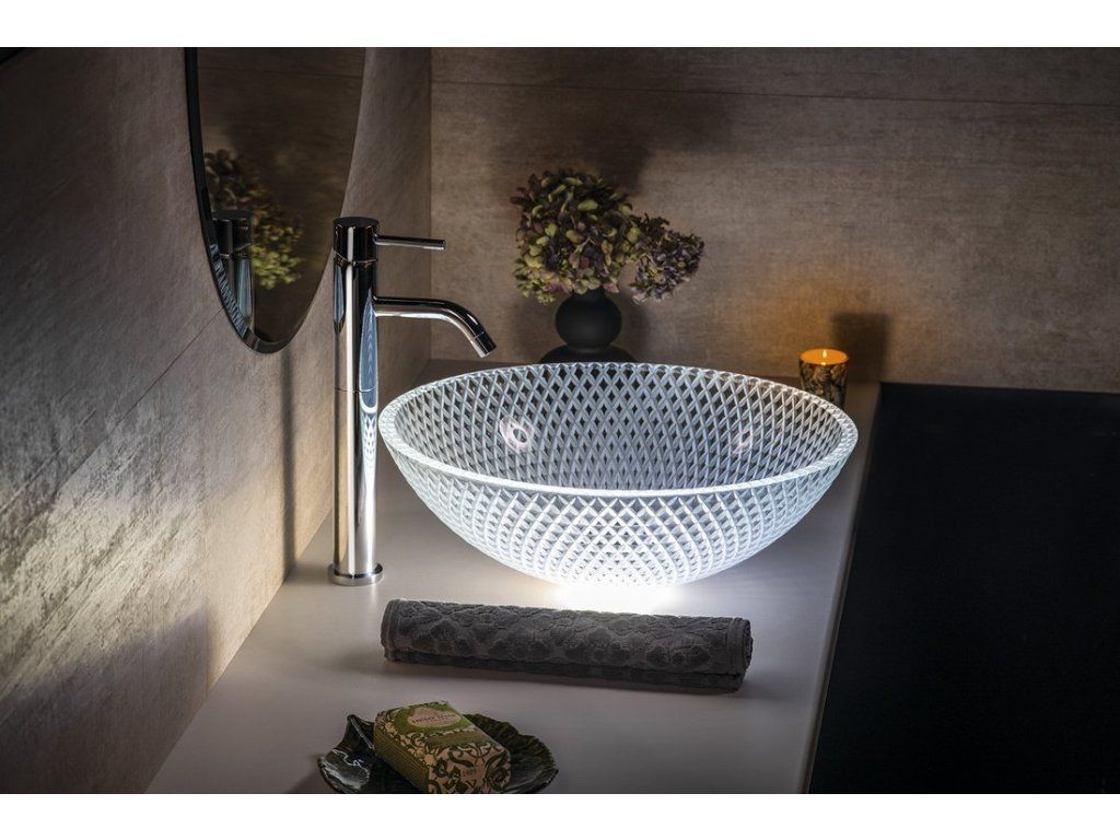 Sapho PUKETA gravírované sklenené umývadlo na dosku priemer 42cm, číre sklo TY165
