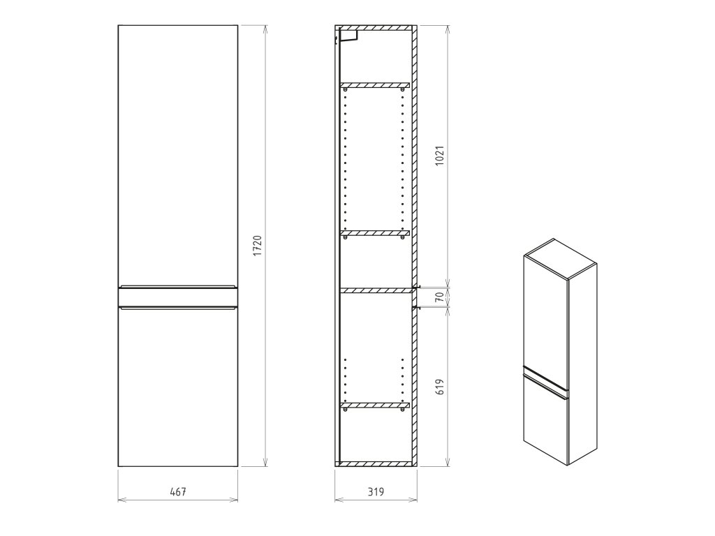 Sapho SITIA skrinka vysoká 46,7x172x32cm, 2x dvierka, ľavá/pravá, biela matná SI450-3131