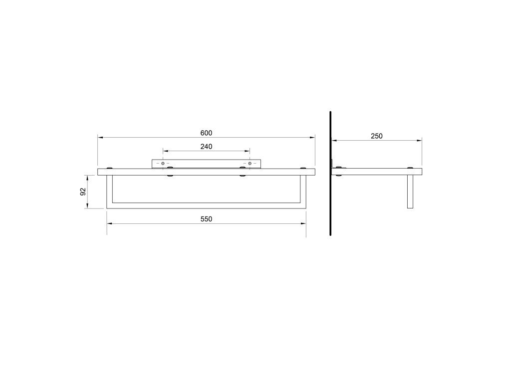 Sapho SKA polička na uteráky s hrazdou 600x250mm, dub/čierna mat SKA385B