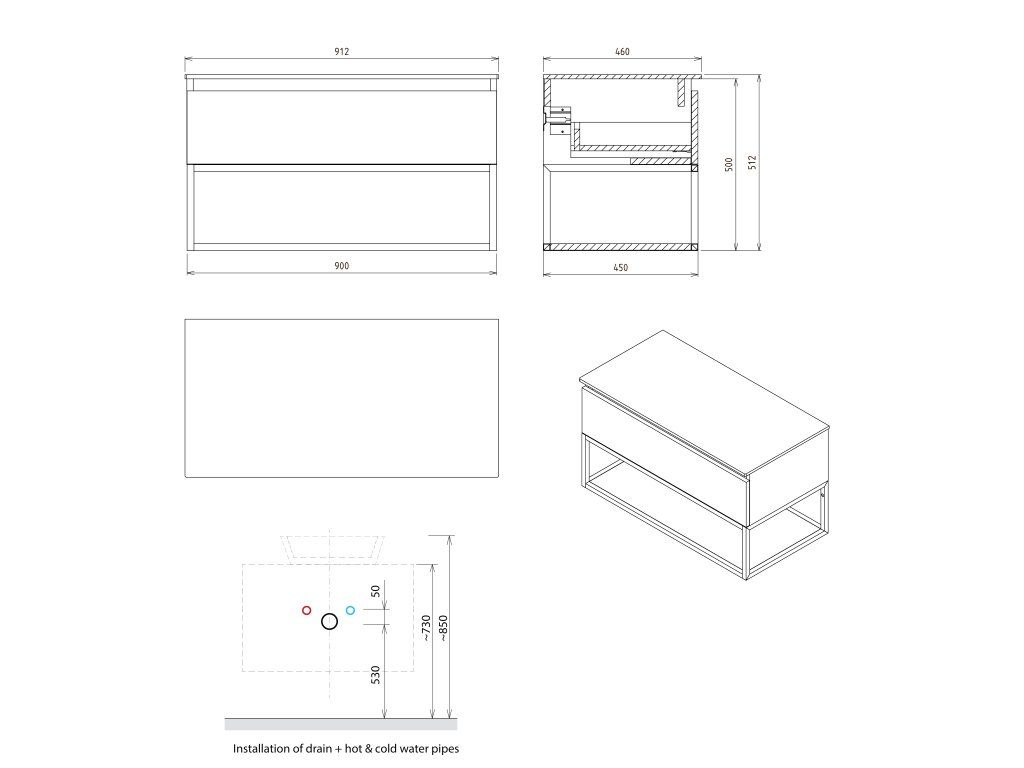 Sapho SKARA umývadlová skrinka 90x50x45cm, čierna mat/dub collingwood CG006-1919