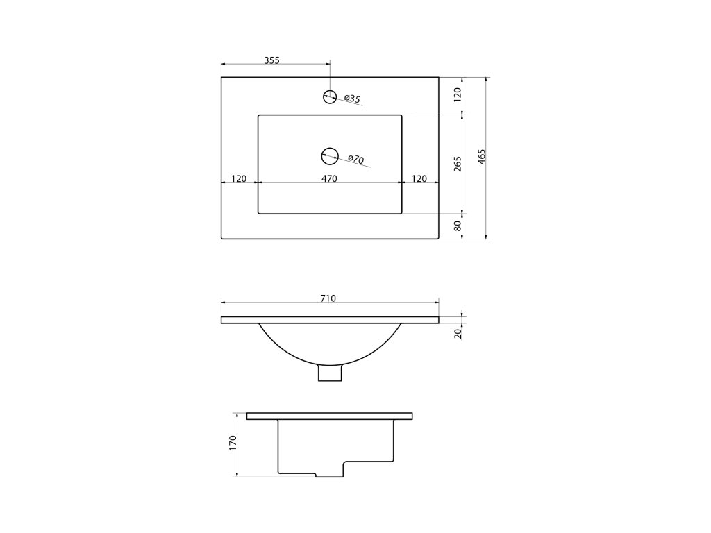 Sapho SLIM keramické umývadlo, nábytkové, 70x46,5cm, biela 1601-70
