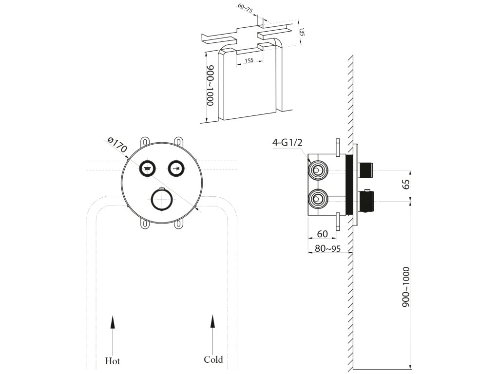 Sapho SMART SELECT podomietková termostatická sprchová batéria, box, 2 výstupy, chróm RP032