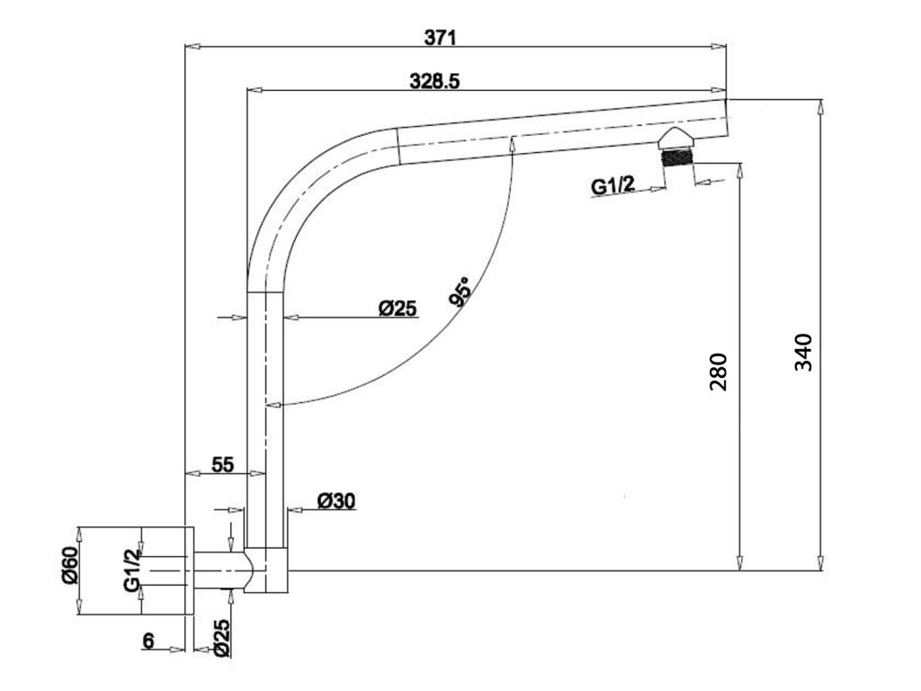Sapho Sprchové ramienko guľaté vysoké, 370mm, chróm 9005