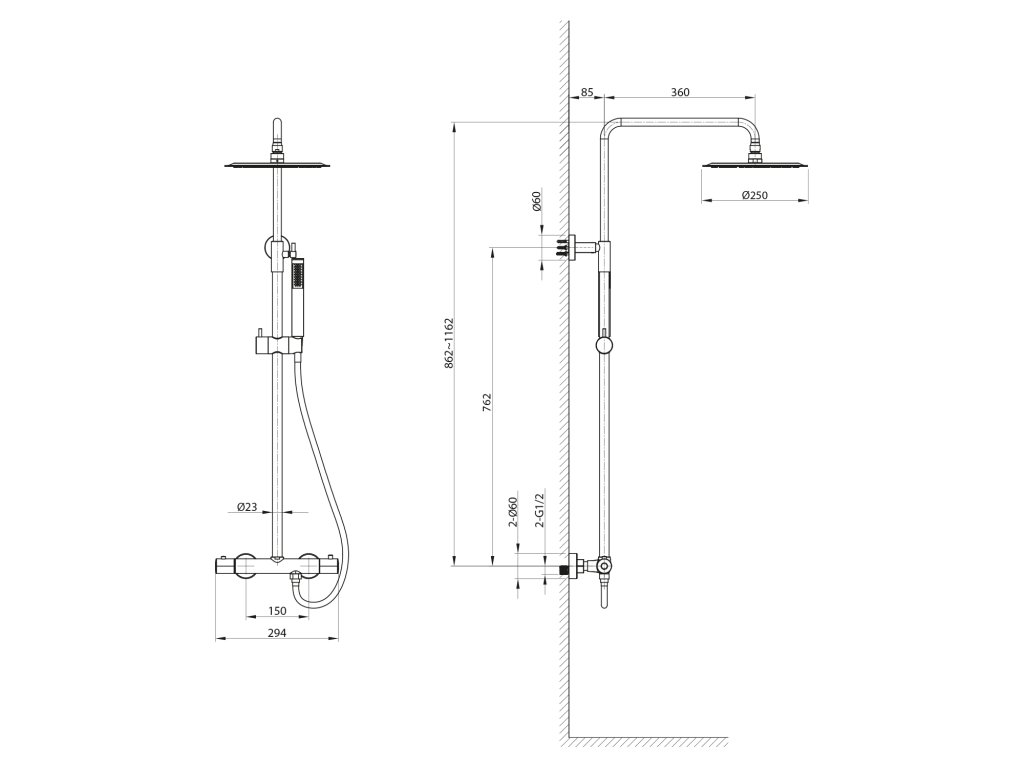 Sapho Sprchový stĺp s termostatickou batériou, čierna KU139B
