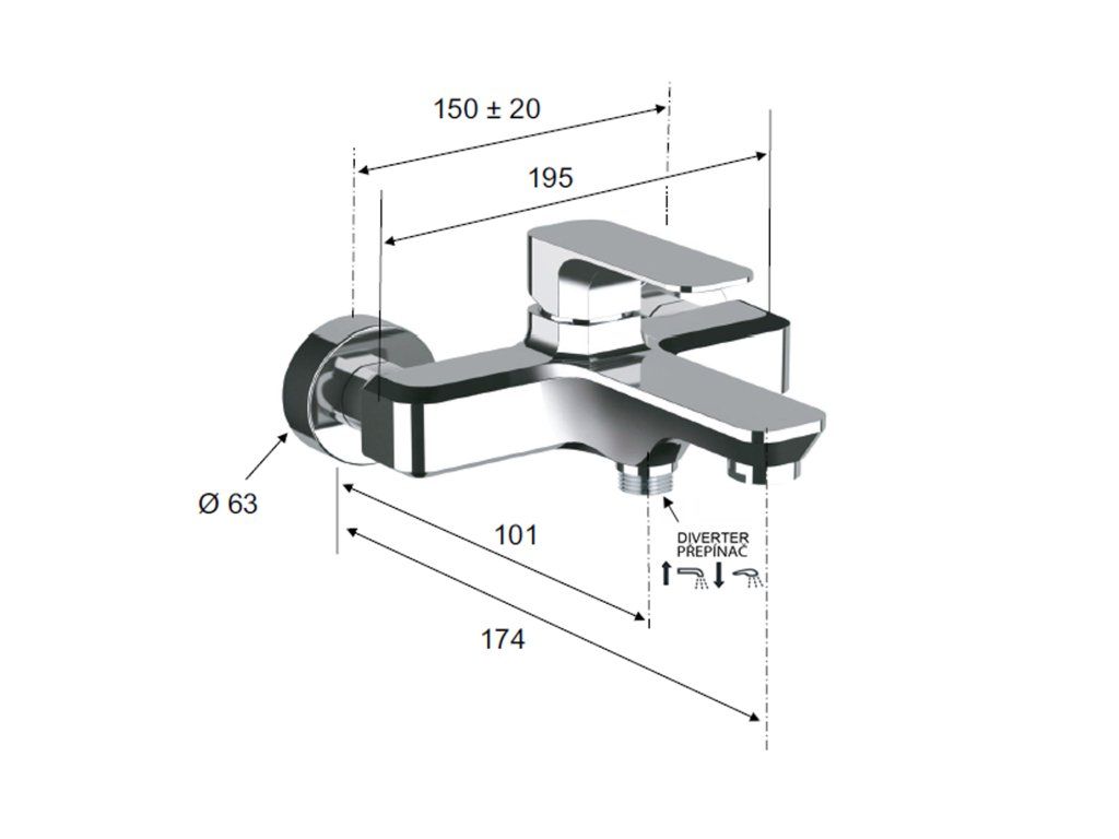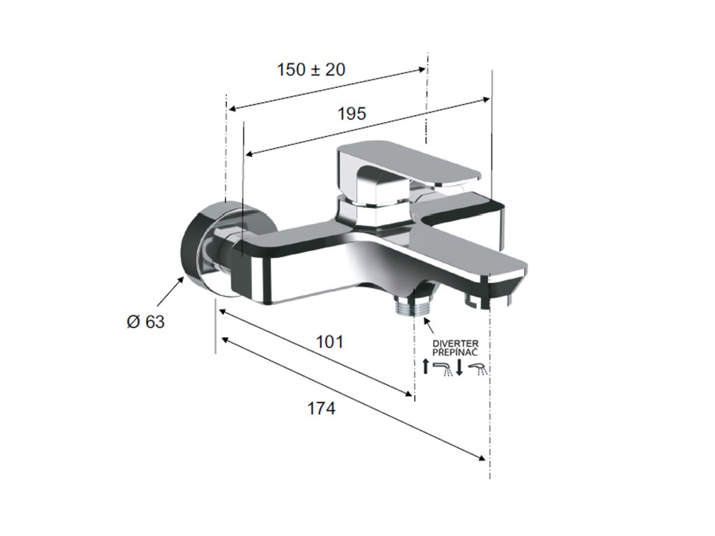 Sapho SPY nástenná vaňová batéria, chróm PY10
