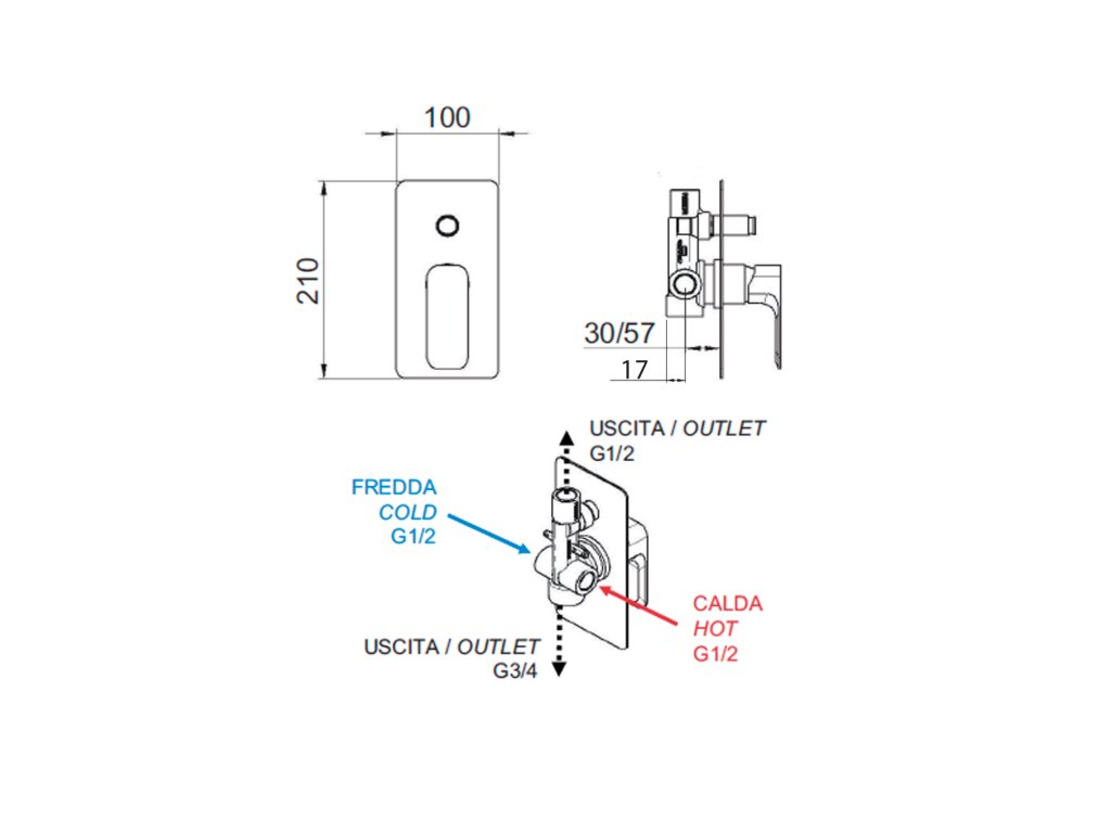 Sapho SPY podomietková sprchová batéria, 2 výstupy, chróm PY42