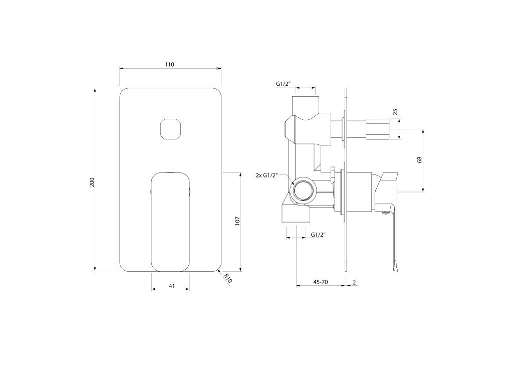 Sapho SPY podomietková sprchová batéria, 2 výstupy, otočný prepínač, chróm PY43