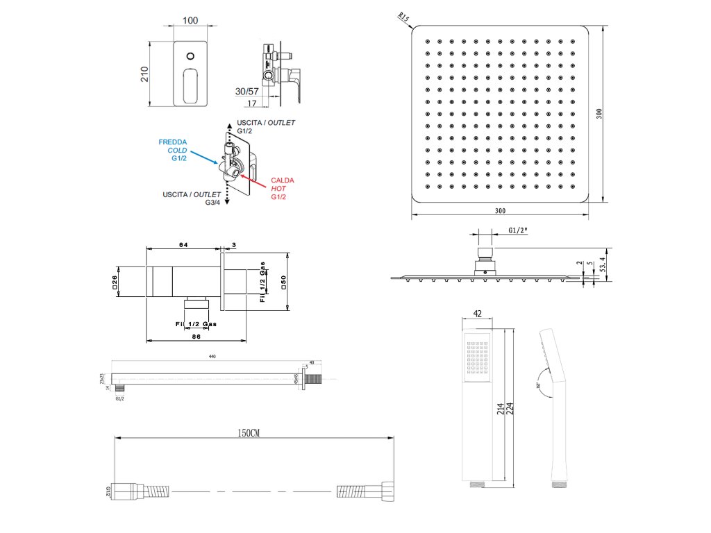 Sapho SPY podomietková sprchová súprava s pákovou batériou, 2 výstupy, chróm PY42-01