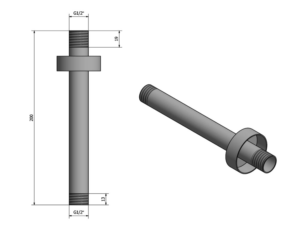 Sapho Stropní sprchové ramienko, guľaté, 200mm, čierna mat 1205-05B