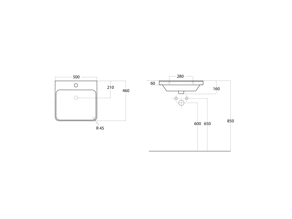 Sapho THALIE 50 keramické umývadlo nábytkové 50x46cm, biela TH11050