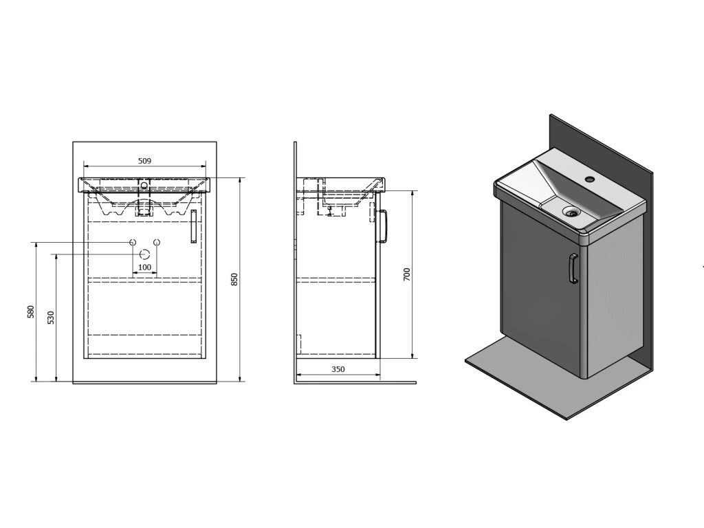 Sapho THEIA umývadlová skrinka 50,9x70x35cm, 1xdvierka, ľavá, dub strieborný TH057-1111