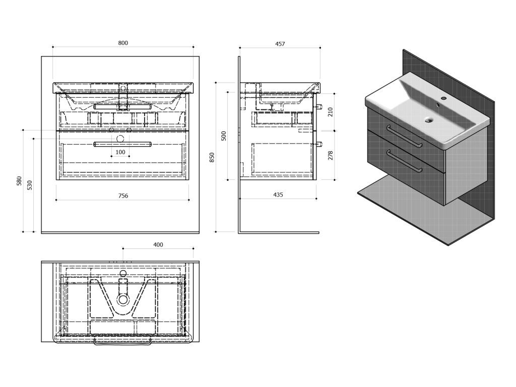 Sapho THEIA umývadlová skrinka 75,6x50x44,2cm, 2x zásuvka, dub strieborný TH080-1111