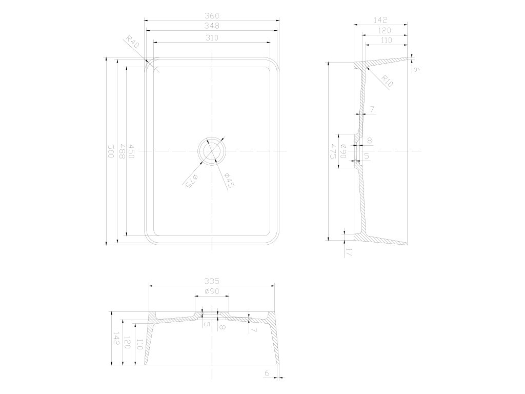 Sapho THIN umývadlo na dosku 50x37 cm, bielá mat WN321