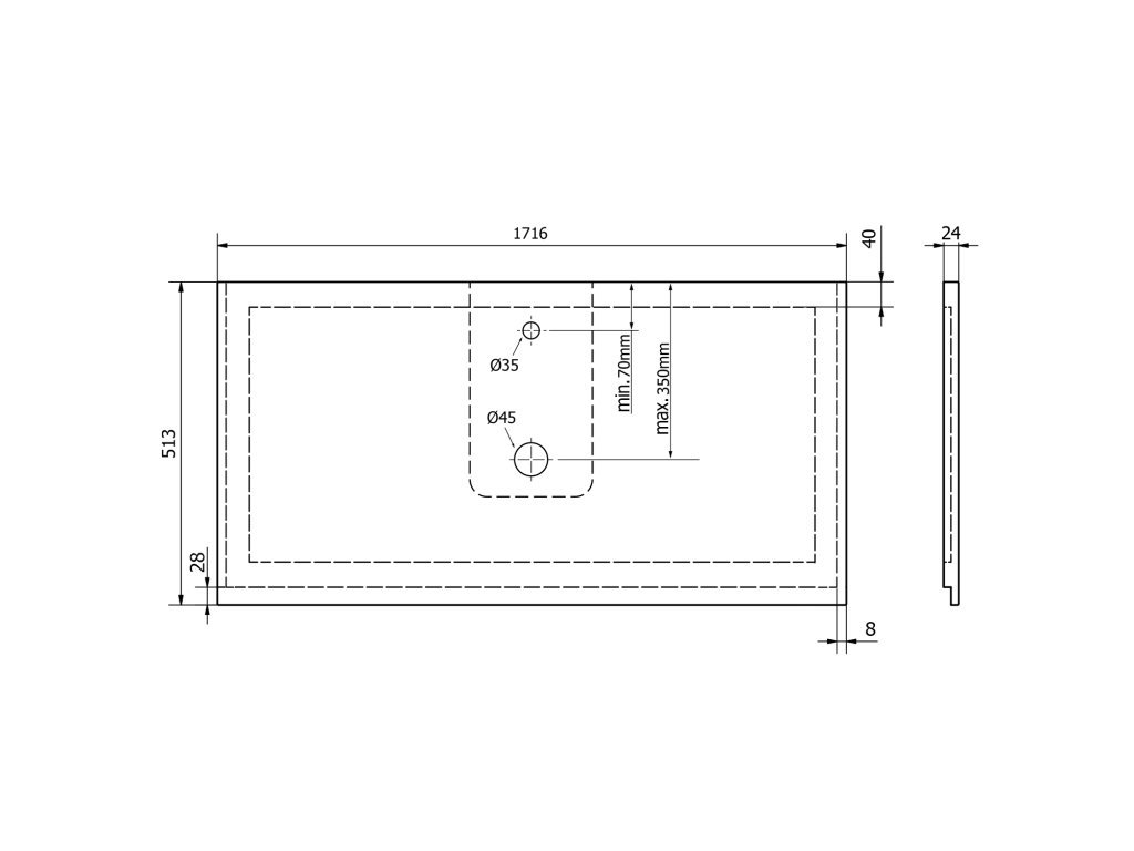 Sapho TREOS doska 1716x513 mm, Rockstone, biela matná TX172-0101