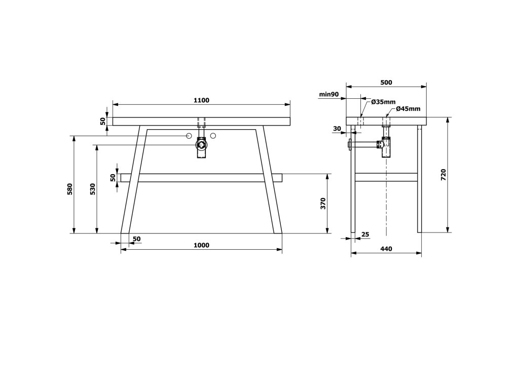 Sapho TWIGA umývadlový stolík 110x72x50 cm, čierna matná/Cement VC453-110-7