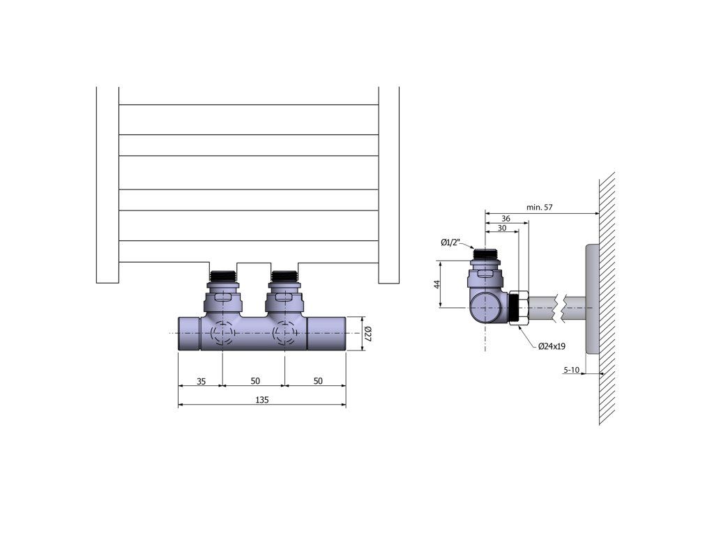 Pripojovacie ventily, ktoré ponúkame, sú dodávané so svorkou pre najbežnejšie potrubia (Ø15 mm Cu a Ø16 mm Alupex), takže nie je potrebné nič dokupovať na pripojenie. Na zakrytie prívodných potrubí a otvorov v stene odporúčame doplniť krycie rozety.