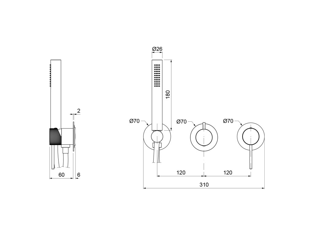 Sapho ULTRASAN podom. sprch./vaňová batéria, ručná sprcha, 2 výstupy, čierná mat/chróm UT045VBC
