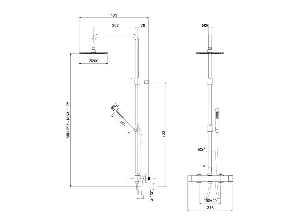 Sapho ULTRASAN sprchový stĺp s pákovou s batériou, guľatý, chróm UT139V
